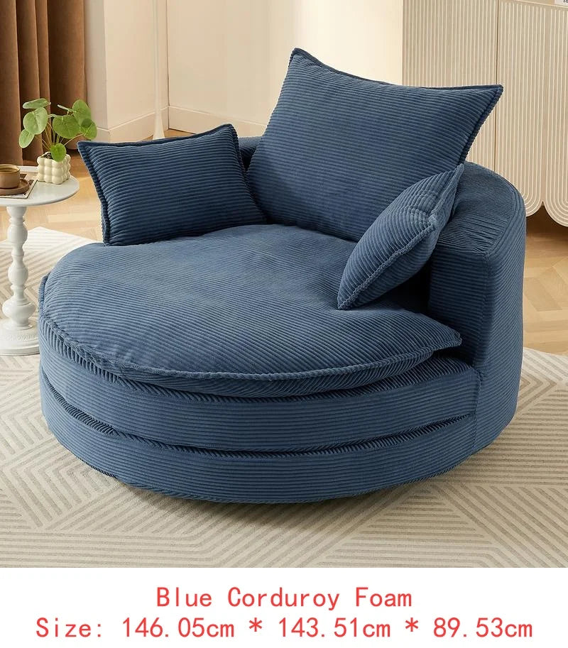 Dual-Layer Cushion with Deep Seating - Designed for extended lounging, this oversized round swivel chair features a generous 38-inch seat depth that allows you to fully stretch out or curl up in total comfort. The seat is built with a dual-layer cushion system—an ultra-soft top layer for plush, cloud-like comfort, and a firmer bottom layer that provides resilient support. Ideal for reading, napping, or cozying up with a loved one or pet.
