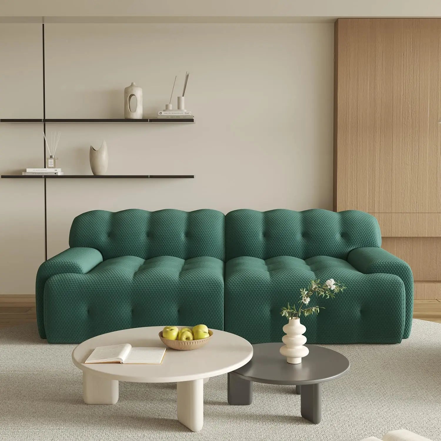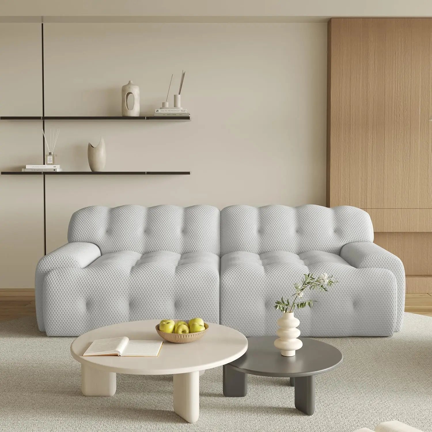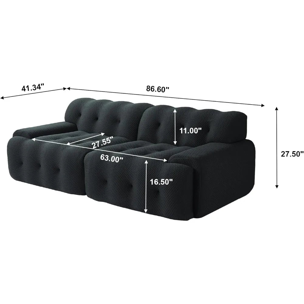 "86.6" Modular Sectional Couch - 3D Mesh Cloud Sofa, Curved Loveseat for Living Room, Comfy Design"