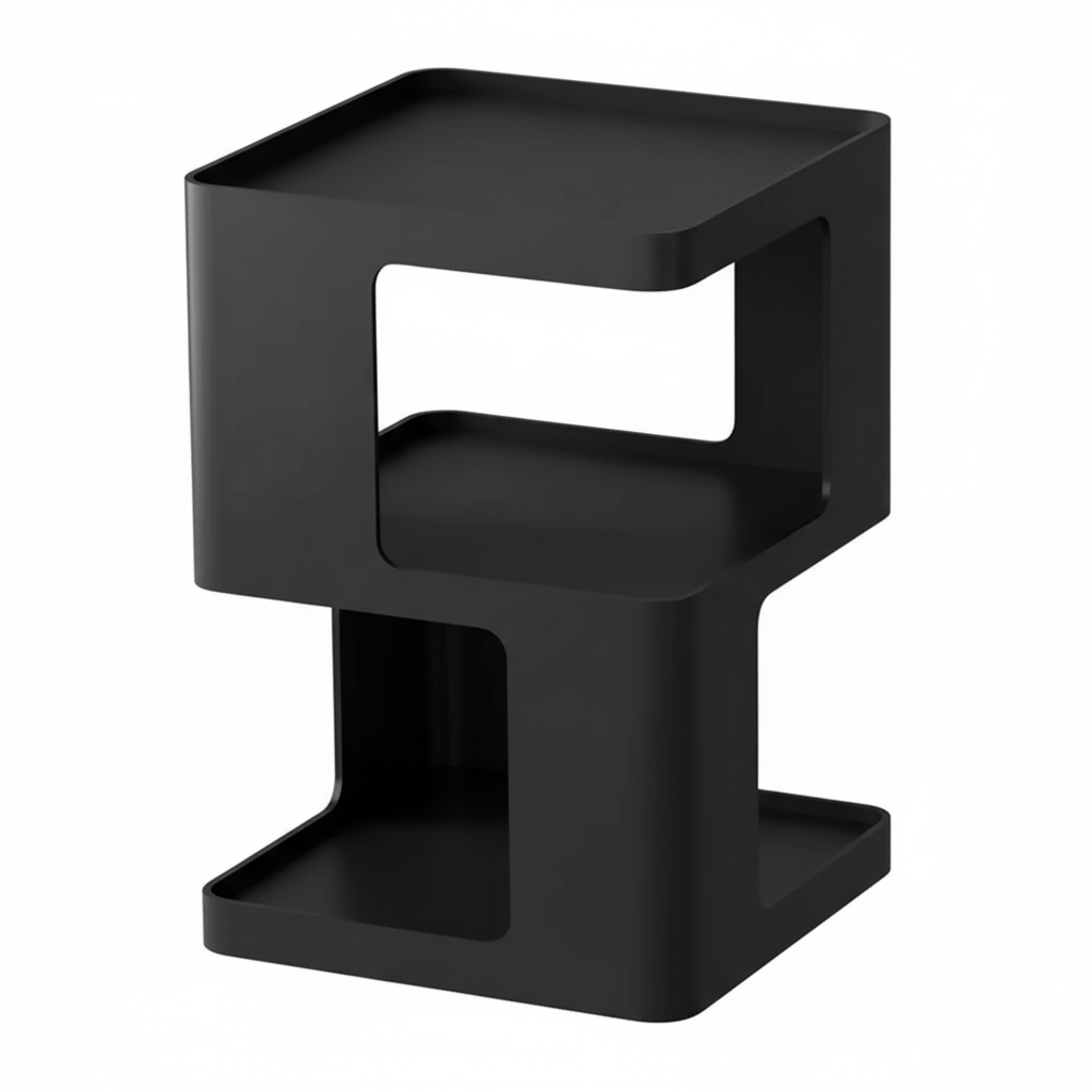 Metal Black Nightstands, Modern Side Table with 3 Tiers Storage